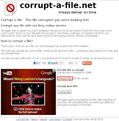Nb : batas file yang bisa diupload cuma 10 Mb,jadi kalo mau membuat corrupt file yang