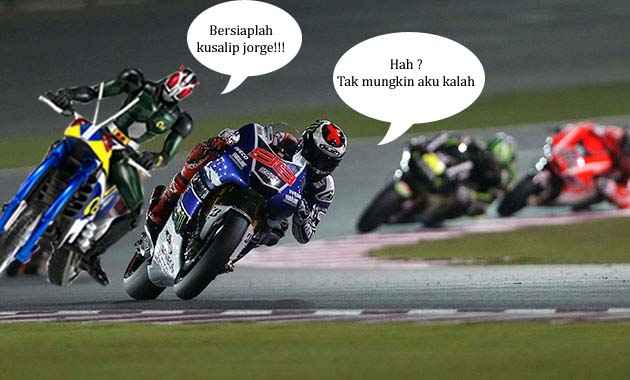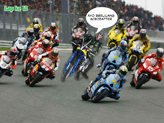 Halo teman-teman semua.Suka nonton motogp ? Nah,kalau iya kalian mesti melihat nih cerita seru yang kubuat ini,dijamin pasti anda terhibur karena ceritanya sedikit ngawur,yang penting baca dulu,jangan buru-buru kabur.haha.Cerita ini bermula saat gelaran balap motor terbesar Motogp sedang dilangsungkan,saat sesi kualifikasi Rider asal jepang yang bernaung di tim Honda Gressini mengalami insiden yang membuatnya tidak bisa mengikuti racenya.Rider ini bernama Hiroshi Aoyama,dan karena kejadian itu maka tim Honda Gressini harus mencari akal untuk mendapatkan pengganti sementara sampai Aoyama dinyatakan sembuh dan bisa berlaga lagi di Motogp.Kira-kira bagaimanakah kelanjutan kisahnya ? Saksikan saja cerita lengkapnya dibawah ini :