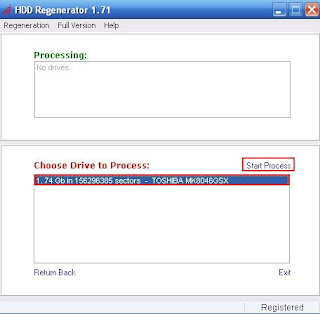 3.Pada kotak bawah ada tipe drive yang muncul,klik > start process