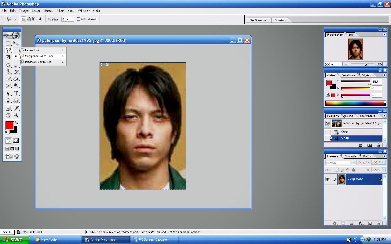 4.Karena yang akan diambil cuma wajahnya,gunakan polygonal tools,arahkan ke bagian wajah,ikuti garis tepi bentuk wajahnya sampai ke bagian leher