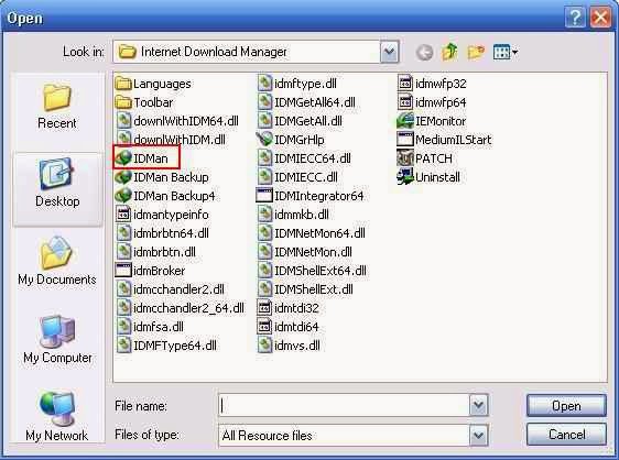 3. Cari letak IDM-nya,biasanya di program files > IDM,pilih yang ada ekstensi .exe (IDMan)
