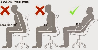 Banyak orang yang mengalami masalah punggung ini saat terlalu lama duduk tegak.Duduk tegak akan membantu kita terhindar dari bungkuk di tulang belakang.Duduk tegak juga bisa membantu membentuk postur tubuh yang tegap dan ideal,tapi ada dampaknya bagi kesehatan.Posisi yang terbaik adalah duduk dengan sudut 135 derajat.Di posisi ini,tubuh bisa sedikit bersantai sambil menyandarkan punggung ke kursi,sehingga tubuh tidak akan kaku dalam waktu lama.Tubuh manusia tidak di rancang untuk diam lama,contohnya saat duduk,kalian akan berganti-ganti posisi untuk menghindari ketegangan kan?