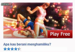Seperti yang kita tau bahwa facebook adalah jejaring sosial yang besar dan usernya berasal dari berbagai kalangan,bukan hanya orang dewasa saja,bahkan sekarang anak-anak bebas mengakses apa saja dari facebook.Kemajuan di bidang teknologi komunikasi yang berkembang pesat membantu facebook mendapatkan popularitas karena semakin hari makin banyak saja yang menggunakannya.Nah,apa jadinya jika informasi yang tampil di facebook justru dapat merusak mental anak-anak? seperti contohnya dalam iklan game ini.Jika diperhatikan,pada iklan sensual ini ada sebuah tulisan yang berbau “mengundang”.