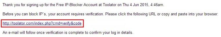 9. Klik link dari Toolator untuk verifikasi