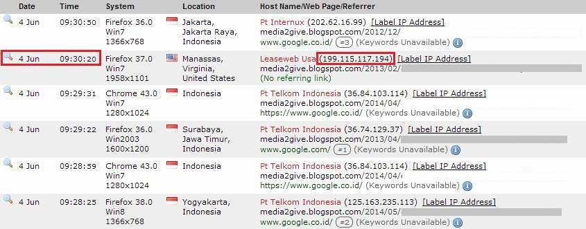 Tapi satu yang perlu di ingat bahwa meskipun kita berselancar di dunia maya,bukan berarti jejak rekam yang dilakukan tidak bisa diketahui.Semua aktivitas kita bisa dilacak jika kita tau caranya.Nah,lalu bagaimana caranya kita tau siapa pembuat komentar spam di blog? Caranya cukup mudah,kalian bisa menggunakan situs Statcounter dan Toolator.Statcounter adalah situs penyedia widget untuk merekam aktivitas dan statistik di blog.Kita bisa tau tentang siapa pengunjung di blog,dari mana asalnya,artikel mana yang populer di blog,berapa jumlah kunjungan per hari dan dengan browser apa di akses.Sementara Toolator adalah situs yang dipakai untuk memblokir IP Adress.