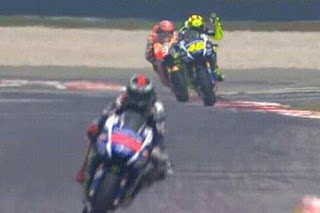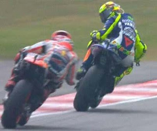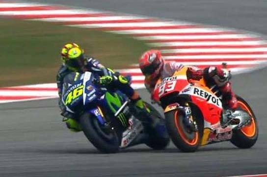 Dialah rider tim Repsol Honda yang gagal bersaing sebagai juara dunia tahun ini,Marc Marquez.Sebelum seri Sepang,selisih point Rossi dan Lorenzo hanyalah 11 point.Jika di hitung-hitung,untuk mendapatkan gelar juara dunia,Rossi minimal harus finish tepat di belakang Lorenzo sampai akhir seri di Valencia.Namun nampaknya ada persaingan tidak sehat di antara para rider.Ini yang di rasakan oleh Valentino Rossi sejak di sirkuit Phillip Island.Rossi merasa Marquez sengaja menghalangi laju motorya untuk mengejar Lorenzo,sedangkan sebenarnya Marquez bisa melewati Lorenzo.