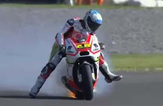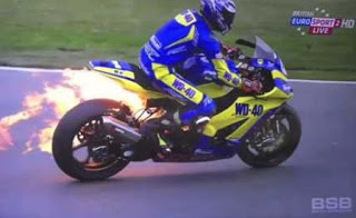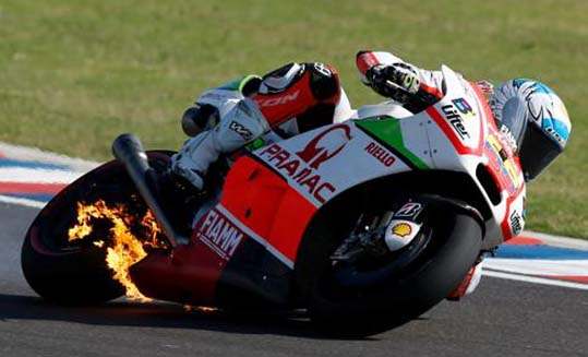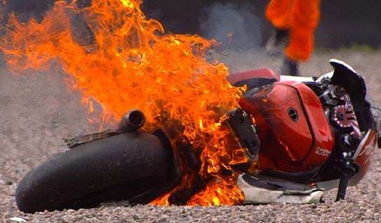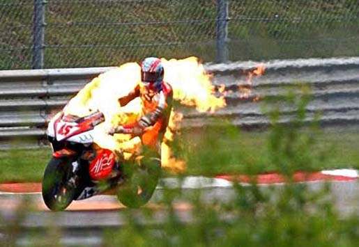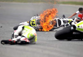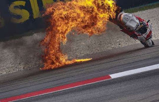 Haloo sobat media2give^^ Setelah beberapa hari nggak posting,sekarang ada juga deh waktu untuk melanjutkan sharing informasi lagi.Yap,kali ini saya mau memberikan informasi seputar Insiden Motor Terbakar Di MotoGP Dan Superbike.Dari judulnya aja udah serem nih hehehe.. Memang kejadian seperti ini mudah terjadi di balapan motor dengan kompetisi yang sengit,karena setiap rider akan berusaha menggeber motornya semaksimal mungkin untuk meraih hasil terbaik.Dalam kejuaraan MotoGP,sering di jumpai problem yang menyebabkan motor tidak dapat melanjutkan balapan.