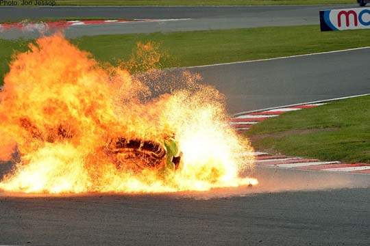 Tom Sykes di race Russia dan juga Chris Walker di Oulton Park.Kebakaran ini dapat terjadi akibat ada benda-benda yang masuk ke dalam motor,seperti pecahan kaca yang masuk ke radiator motor Pol Espargaro hingga menimbulkan api.Selain itu dapat juga di sebabkan karena kebocoran oli yang membuat oli menyembur dari mesin dan menimbulkan percikan api.Untuk lebih jelas tentang seberapa mengerikan Insiden Motor Terbakar Di MotoGP Dan Superbike,bisa langsung saja dilihat dari gambar-gambar berikut ini.
