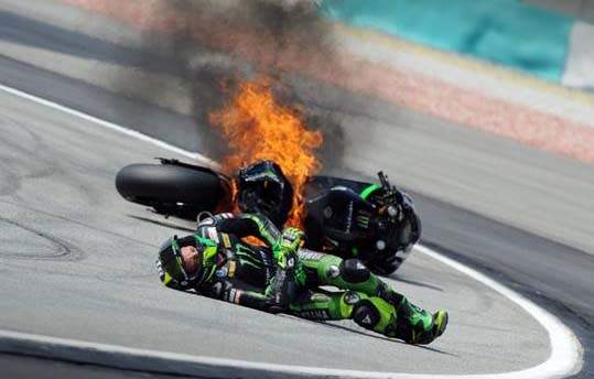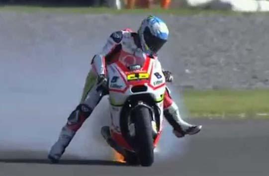 Nah,kejadian semacam ini pernah dialami beberapa rider dari MotoGP dan Superbike,seperti kejadian yang menimpa Pol Espargaro di Free Practice 3 GP Sepang,lalu Yonny Hernandez di sirkuit Termo de Rio Hondo,Argentina,Hector Barbera di Free Practice 1 Aragon,lalu ada juga Lorenzo yang motornya terbakar di kualifikasi Sachsenring dan yang terbaru adalah kecelakaan Jack Miller di kualifikasi Sepang 2015.Sementara untuk Superbike,kebakaran motor pernah di rasakan Colin Edwards di GP Sachsenring 2003,Taylor Mackenzie di Snetterton.