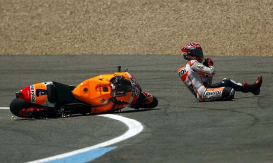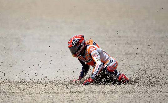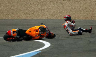 Tapi Marc malah ngeyel,soalnya dia nggak sabar kalau yang menyalipnya The Doctor.Sifat asli Marc yang menggeber motor sampai Over Limit terlihat kembali di race Le Mans itu.Marquez yang agresif kalah karena kesalahannya sendiri,tak mampu mengendalikan emosi mudanya.Tahun lalu,crash juga lah yang menyebabkan Marc kehilangan Championship.6 kali jatuh sudah cukup membuat peluang juara dunianya pupus.Apakah akan terulang lagi di tahun ini dengan Honda yang mengalami banyak problem? Semua tergantung Marc sendiri.