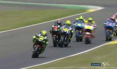 Barulah di sirkuit Le Mans pertarungan Rossi dan Marc kembali terjadi.Rossi start kurang bagus dan terhambat oleh rider lain,sampai-sampai hampir bersenggolan dengan Bradley Smith.Namun berkat pengalaman dan karena sudah mengenal baik sirkuitnya,Rossi tak kesulitan maju kedepan.Drama di mulai sejak lap 12 ketika Rossi yang pada lap sebelumnya berhasil memendekkan jarak dari Marc mulai mendekat terus.Dalam sebuah tikungan,Rossi sukses menyalip Marquez.