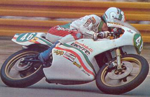 Ternyata sahabat Rossi tersebut mengidolakan pembalap Wildcard Jepang dan terkagum-kagum oleh salah satu rider yang mampu melakukan manuver apik dan berani.Kebetulan rider itu memakai angka 46,sehingga sejak saat itu Vale menetapkan hati memilih angka 46.Rossi pernah di tawari memilih nomornya sendiri setelah menjadi juara dunia.Dia tetap memilih 46 sebagai nomor andalannya.Rossi baru mengetahui kalau ayahnya dulu memakai angka 46 juga saat menang dengan Morbideli 250cc tahun 1979.Dengan begitu,banyak faktor “Luck” yang menaungi nomor 46.