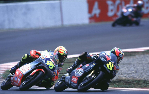 Rossi mengawali race dari posisi start ke 4.Di depannya ada Jorge Martinez,Tomomi Manako dan Kazuto Sakata.Rossi berada di posisi 4 karena hanya mampu mencatatkan waktu 1 menit 34,745 detik.Pole Position di pegang oleh Martinez dengan waktu 1 menit 34,393 detik.Race pun berjalan dan Rossi langsung beraksi di lap awal.Lap pertama posisinya naik ke urutan 3 setelah melewati Martinez.