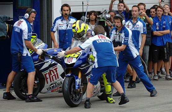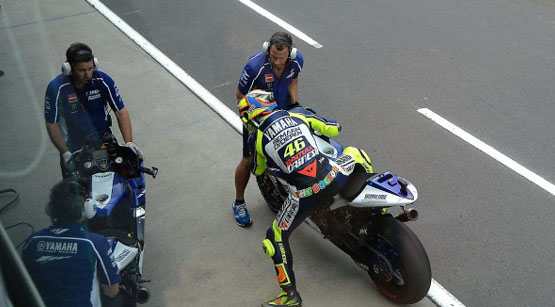 Rossi mengira masih bisa memaksa motor untuk 1 atau 2 lap di depan.Padahal menurut tim,ban Rossi tidak akan bertahan lama lagi.Terjadilah benturan kemauan antara pembalap dan timnya sendiri.Bahkan salah satu kru yang sudah menyiapkan motor pengganti sampai kecewa ketika Rossi memutuskan lanjut.Tim Yamaha pun tidak mau mengambil resiko memberikan pilihan ban untuk Rossi.