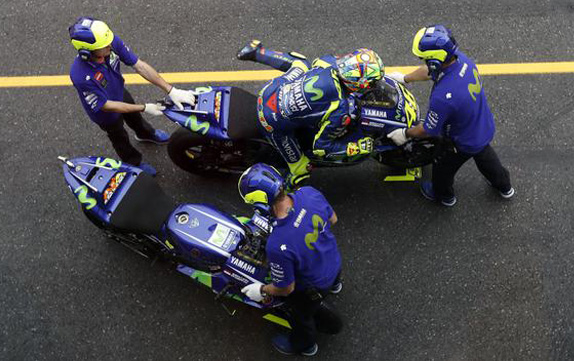 Akhirnya Intermediatte Tyre di pasang pada motor pengganti Rossi.Sementara Honda berani menggunakan Slick Tyre untuk Marc.Yamaha beralasan tidak punya data yang cukup untuk berani mencoba Slick Tyre pada aspal yang belum sepenuhnya kering.Namun Honda berani berspekulasi yang ternyata membuat Marquez jadi juara.