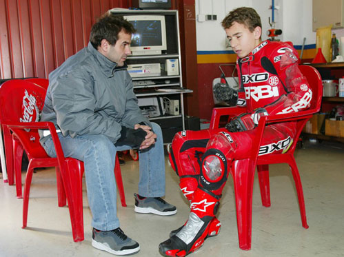 Ya,Lorenzo di rekrut menjadi pembalap Tim Derbi kelas 125cc.Di depan bosnya Lorenzo bersikap santai,petentang petenteng,mungkin karena dia waktu itu masih kecil hehehe… Lorenzo memulai debutnya di Jerez pada bulai Mei.Dia tidak ikut 2 race awal karena umurnya belum 15 tahun.Lorenzo harus menjalani cek kesehatan sebelum ikut race perdananya karena di sesi Private Test,Lorenzo mengalami insiden pada lengannya dan terpaksa melakukan penyembuhan agar dapat ikut di balapan Jerez.