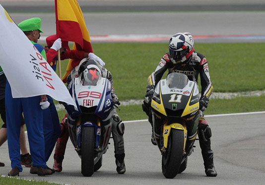 GP Sepang 2010,tempat yang tepat untuk merayakan kesuksesan Lorenzo menjadi juara dunia dengan syarat dia hanya perlu finish di urutan ke 9.Walaupun tidak punya beban berat,Lorenzo tampil ngotot sepanjang lomba.Mengawali start dari Pole Position,Jorge melesat maju kedepan.Namun di Lap 8 Dovisioso mampu melewatinya setelah manuver overtakenya berhasil.Tekanan dari Dovizioso tak mampu di bendung Lorenzo sehingga membuatnya melebar ketika menikung ke kanan yang akhirnya di manfaatkan Dovizioso.